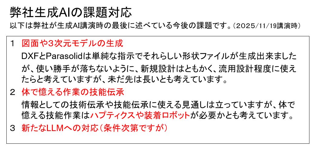 弊社生成AIは技術伝承・技能伝承を目的の1つにしていますが、いずれも普段から社内